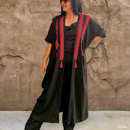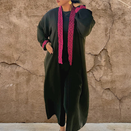 Black Abaya with Reddish Crochet