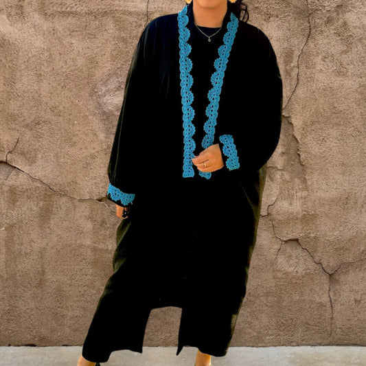 Midnight Turquoise Crochet Abaya